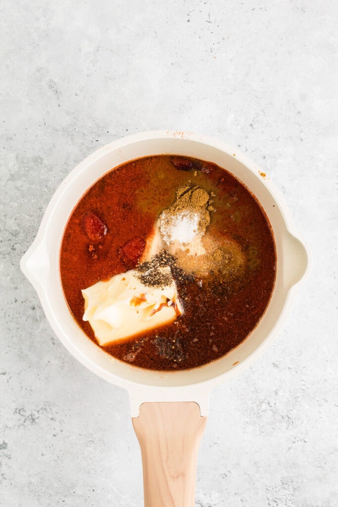Step Two: Add ingredients to a saucepan and bring to a simmer.