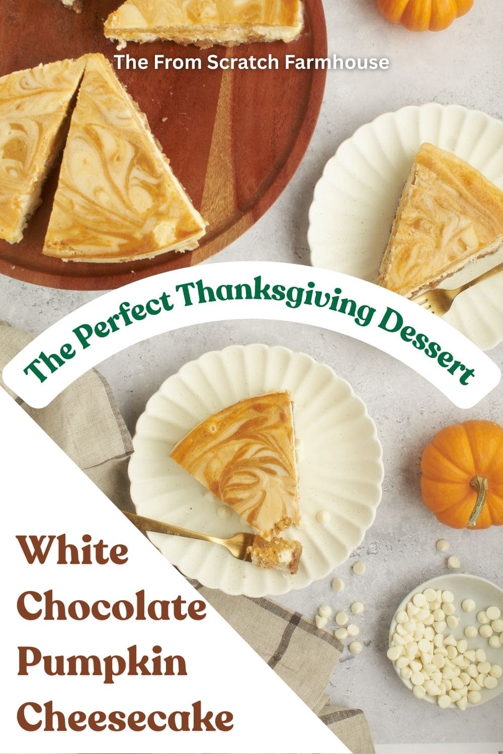 Looking for a pumpkin dessert for your Thanksgiving or Christmas dinner that’s more exciting than pumpkin pie and pretty enough to turn heads? This white chocolate pumpkin cheesecake is it! With a buttery graham cracker crust and a smooth yet flavorful filling, you will find yourself making this recipe again and again. The best part? It’s easy!