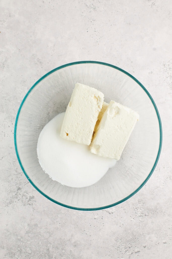 To a large bowl or stand mixer, add the cream cheese and sugar. Beat on medium speed with a mixer until smooth and creamy.